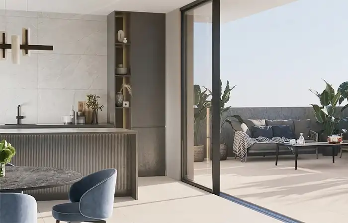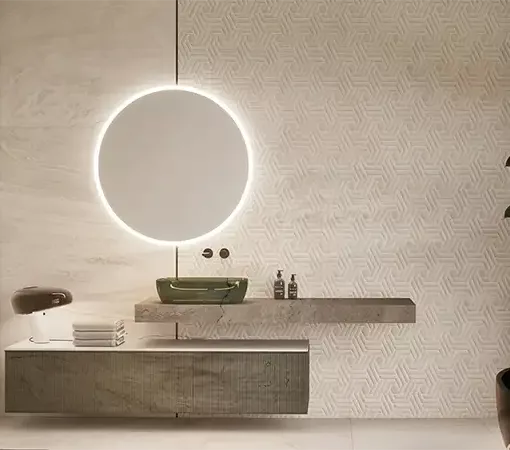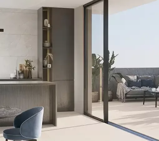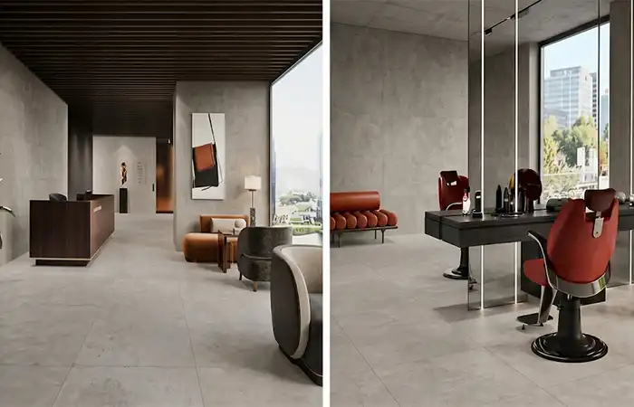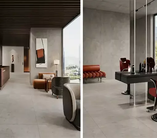 Belgravia: Es la joya de la corona. Se presenta en formato 80×80 cm y 60×60 cm recreando los suelos de marquetería clásica (tipo Versalles o punta de Hungría). Es una pieza decorativa en sí misma que recupera el lujo de los antiguos palacios europeos pero con la resistencia del porcelánico.