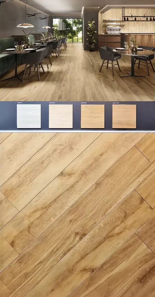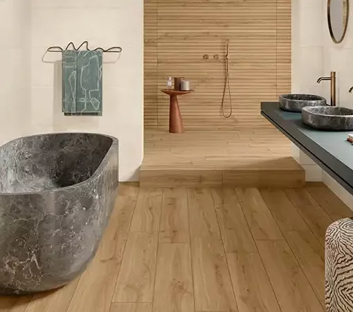 La serie Mayari de Metropol es una colección de gres porcelánico que destaca por su interpretación minimalista y contemporánea de la madera. Se caracteriza por una gráfica extremadamente limpia y sutil, donde las vetas son suaves y los nudos casi inexistentes, lo que aporta una sensación de continuidad y serenidad visual a los espacios. Disponible en formatos estilizados como el 20×120 cm y en una paleta de colores naturales (Oak, Sand, Walnut), esta serie ofrece un acabado de tacto sedoso y una alta resistencia técnica, siendo la opción predilecta para proyectos de arquitectura moderna que buscan la calidez de la madera sin renunciar a una estética depurada y elegante.