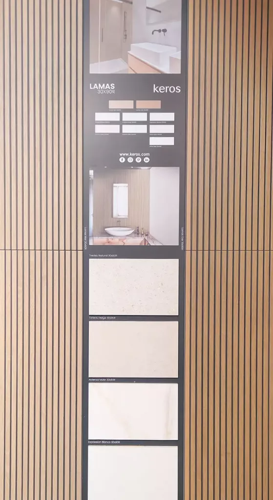 Inspirada en la textura de la madera y con acabados rectificados que garantizan juntas mínimas, la gama Lamas 30×90R de Keros ofrece una solución elegante y versátil para revestimientos interiores: los tonos cálidos de Lamas Miel, el natural equilibrado de Treviso Natural, la sutileza de Torento Beige, la sobriedad mate de Ardenza Mate y la luminosidad pulida de Expresión Blanco se combinan para crear ambientes modernos, acogedores y armoniosos, adaptables tanto a baños como a cocinas o espacios de diseño.