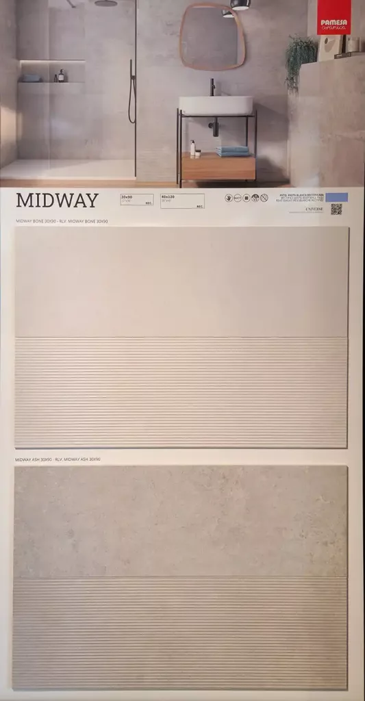 La serie Midway de Pamesa Cerámica propone pavimentos de gres porcelánico, con acabado mate y diseño minimalista. Disponible en tonos neutros como Ash, Bone, Grey y Graphite, está pensada para espacios interiores que buscan elegancia, continuidad visual y un toque contemporáneo. Su superficie lisa y uniforme facilita combinaciones con otros materiales, aportando versatilidad a cualquier proyecto de interiorismo.