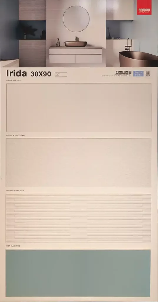 La serie Irida de Pamesa Cerámica fusiona color y textura en revestimientos de pasta blanca rectificada en formato 30×90 cm. En sus elegantes tonos Blanco y Gris, aporta un toque sofisticado y sobrio, ideal para estancias con personalidad. Su superficie mate con suave textura permite combinaciones únicas y brinda una estética moderna y acogedora. Perfecta para espacios interiores como baños, cocinas o salones, Irida ofrece versatilidad y carácter para decorar con estilo.