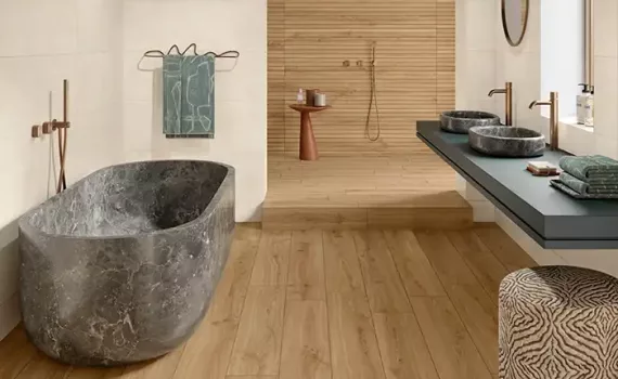 Es una colección de gres porcelánico que rinde homenaje a la madera natural con un enfoque rústico y acogedor.