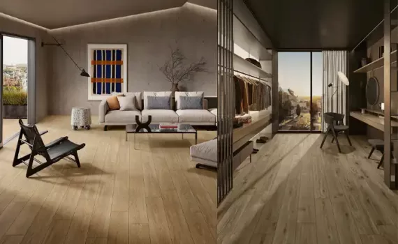Es un gres porcelánico de alta calidad que destaca por su fiel reproducción de la madera natural en formato de listón de 20x120 cm.