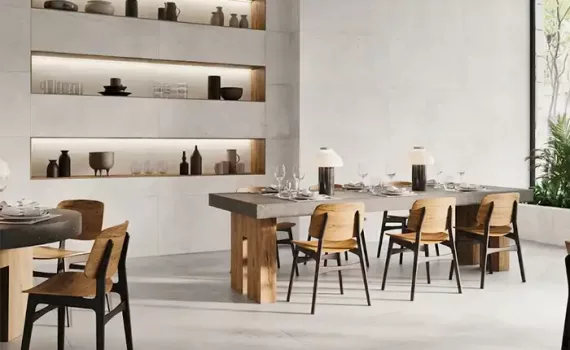 Es un porcelánico que reproduce la estética del cemento endurecido, pero con un refinamiento que lo hace apto para cualquier hogar.
